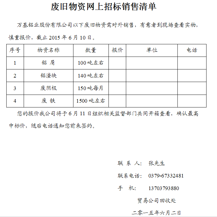 萬(wàn)基鋁加工(5臺(tái))循環(huán)水冷卻塔維修招標(biāo)公告