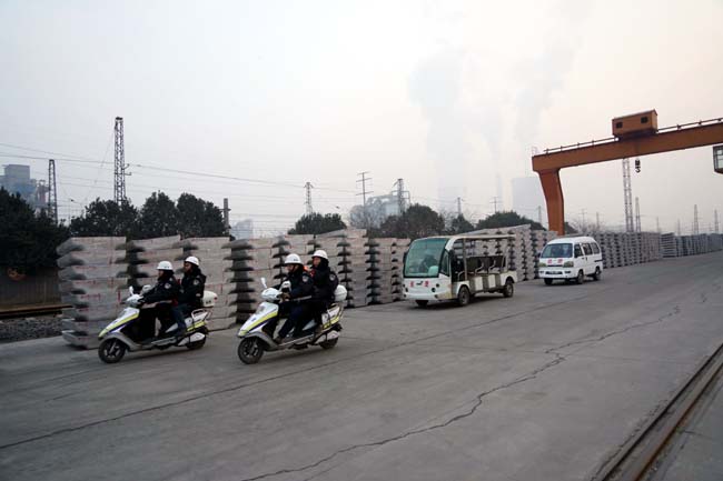 保衛(wèi)部巡邏隊員在進行操練,堅決打擊各種危害企業(yè)生產(chǎn)經(jīng)營秩序的違法犯罪活動。