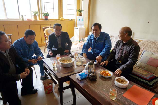 集團(tuán)公司領(lǐng)導(dǎo)郭峰、王宏偉等到離退休老干部家中慰問(wèn)。